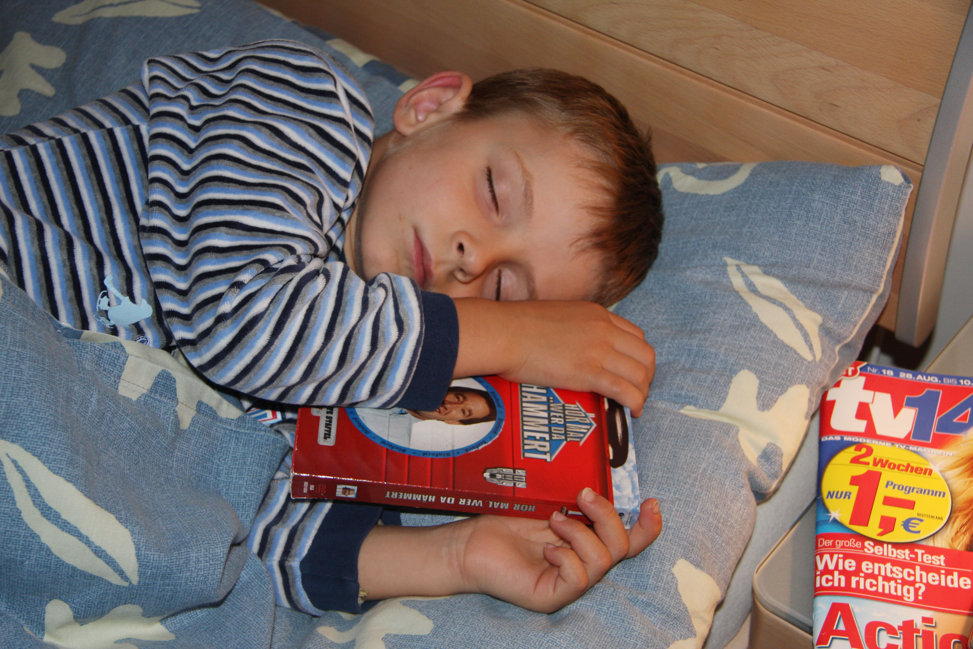 Allen, die mich jetzt fragen wollen, ob „Tool Time“ wirklich ein adäquates Fernsehprogramm für kleine Buben ist, entgegne ich ganz forsch, dass ich die grausamen Manga-Comics und den ganzen Quatsch, der tagelang auf den so genannten Kindersendern rauf- und runterläuft, viel schlimmer finde als „Tool Time“. Mehr Mist lernt Peter dort auch nicht. Außerdem kriegt er keine Albträume davon, wie man sehen kann.